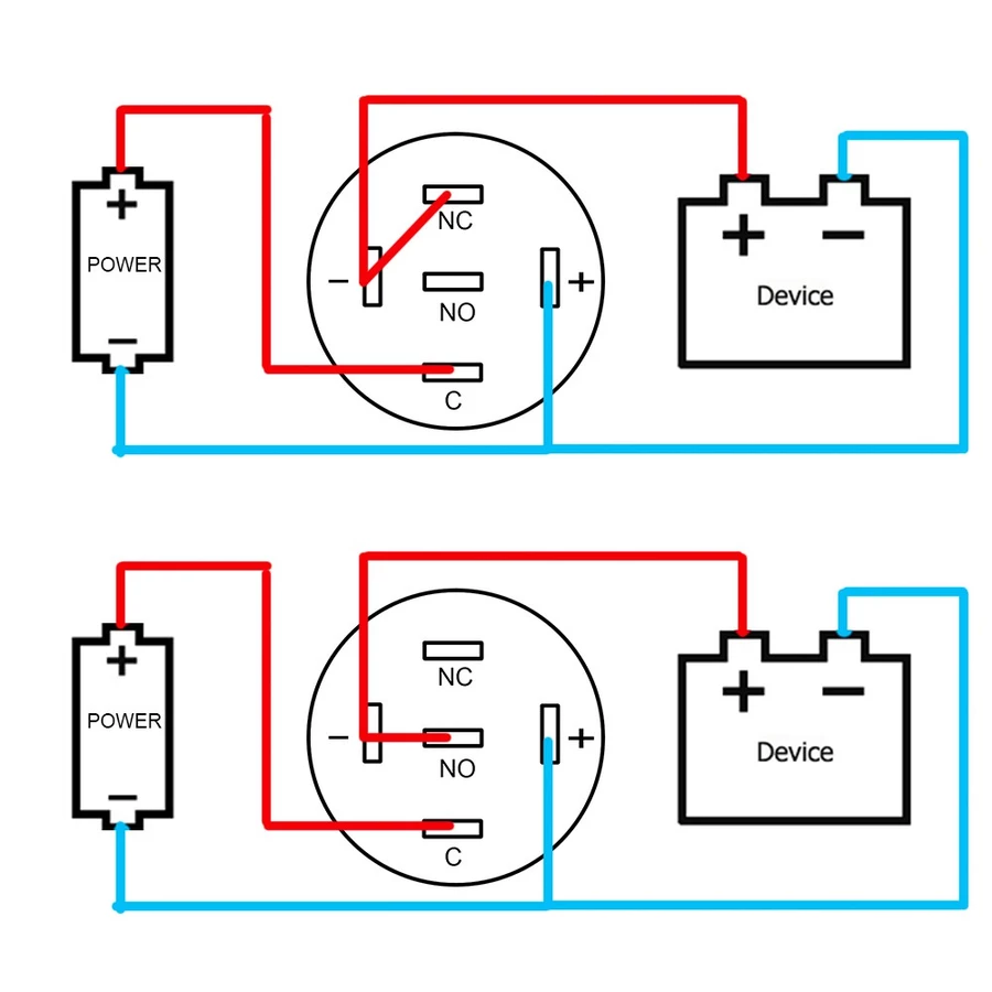 - Connect ” NO ” and ” C ” : The circuit is alway open unless press the button.