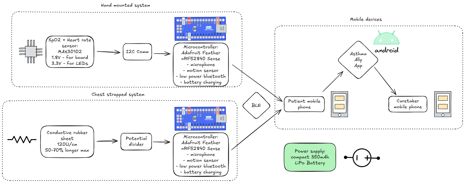 - Our app takes in these data (SpO2, heart rate, sound, motion, breath) to deduce signs of imminent asthma attack