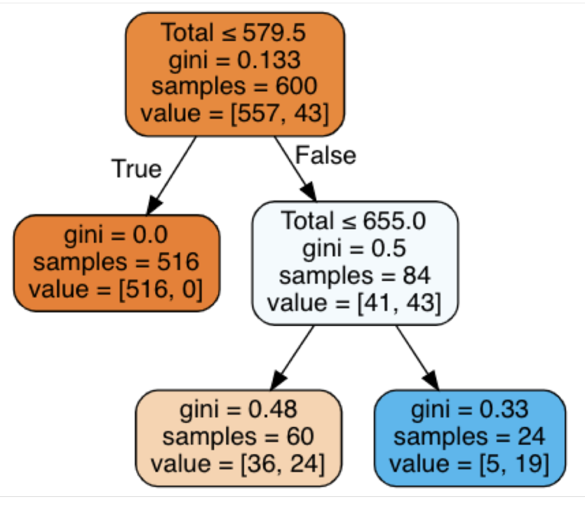 Consecutive binary decision are made based on Gini Index - Measurement of impurity
