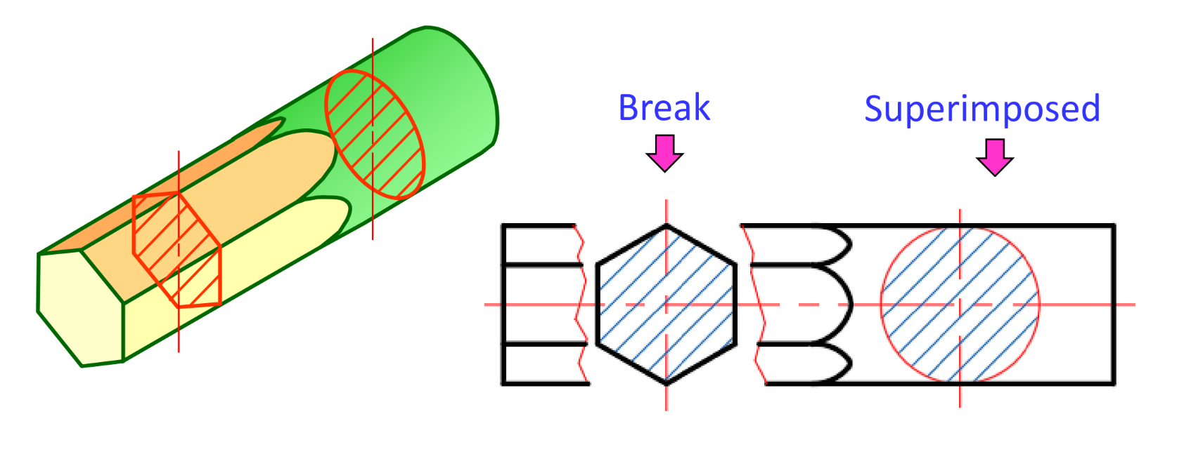 - Particularly ribs and lugs — unless transversely cut Hatching