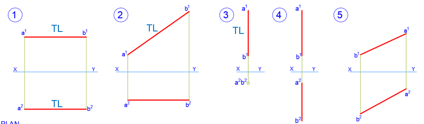Perpendicular to one plane of projection but inclined to adjacent planes