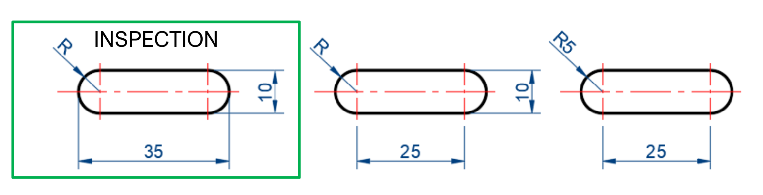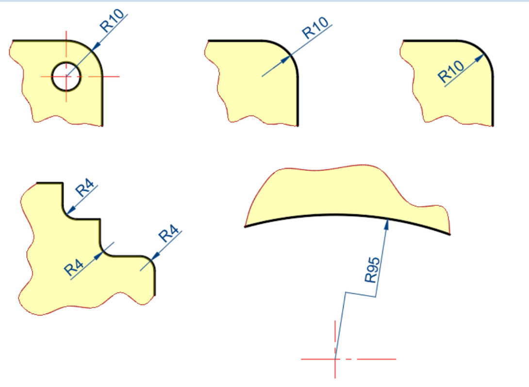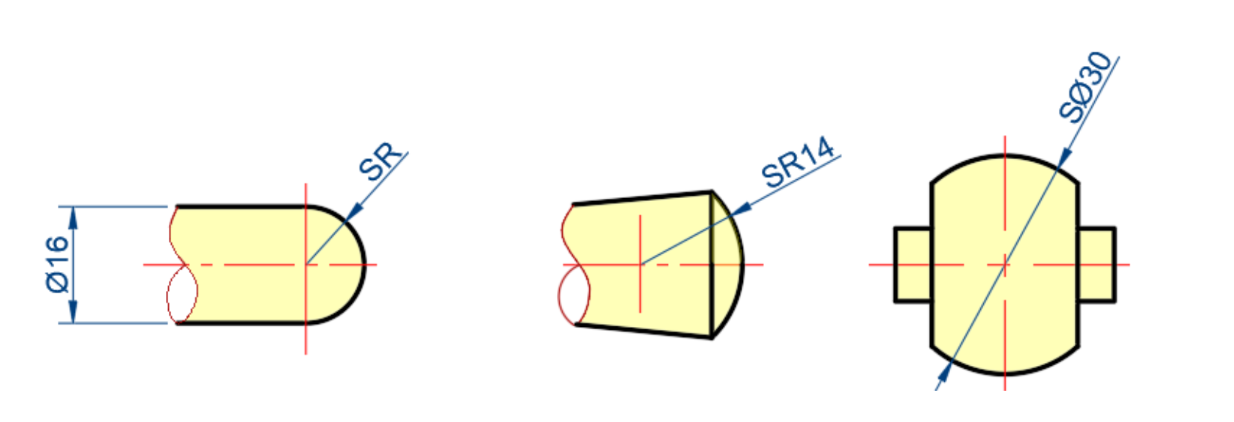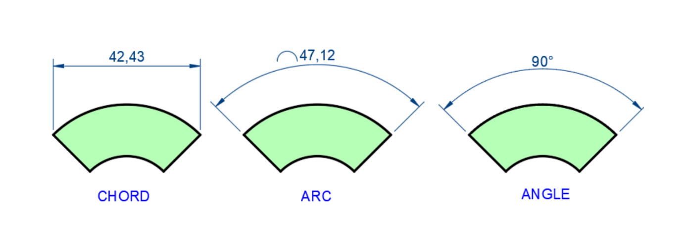 - R for arcs (<180) — for circles (>180) — SR/ for spherical radius / diameter