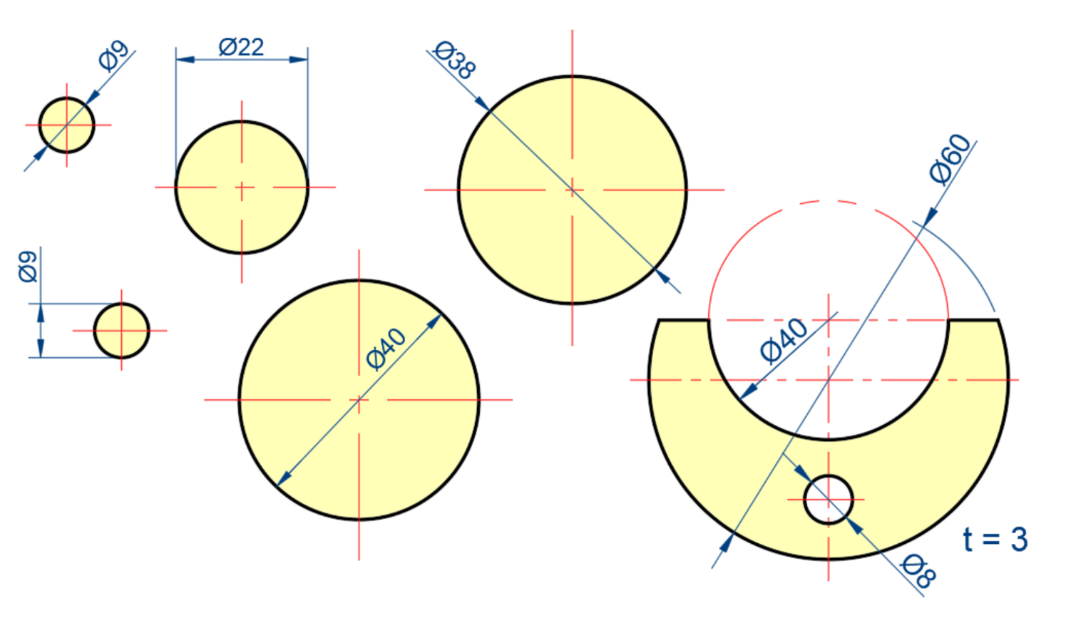 - Don’t dimension hidden lines — pick views that show it’s true size and shape