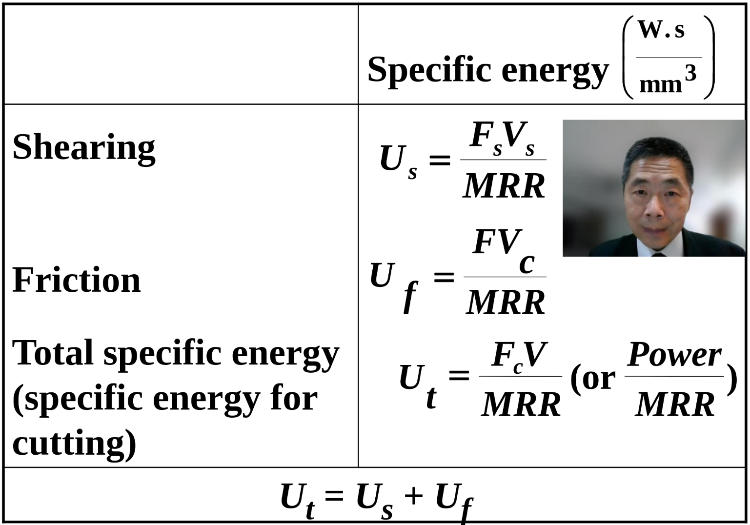 - Heat used for melting / Heat received at work surface
