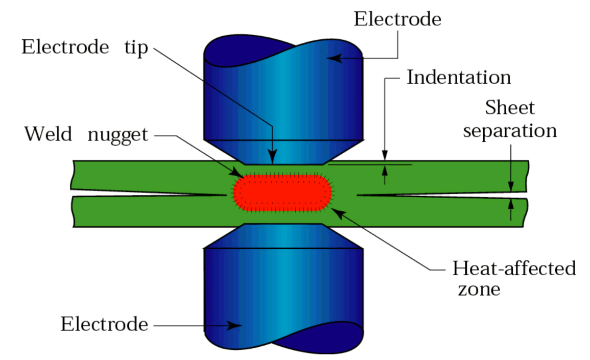 - Heat generated from electrical resistance welds sheets together