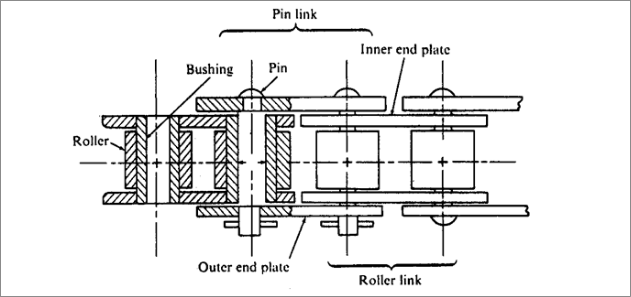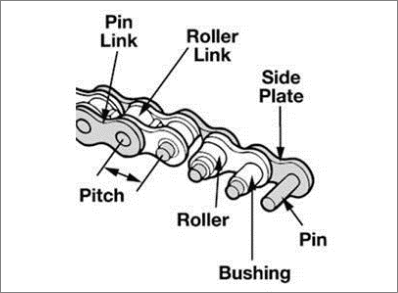 Roller chains seldom fail because they lack tensile strength; they more often fail because they have been subjected to a great many hours of service