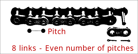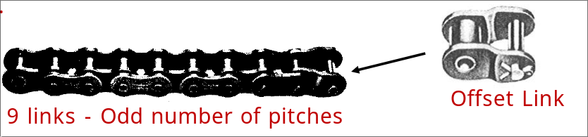 Since each roller link requires a pin link for assembly, a chain normally has an even number of links